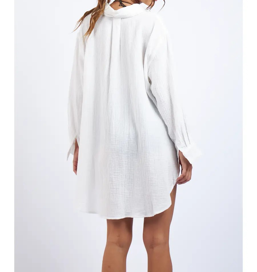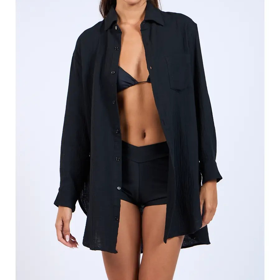 This oversized solid color cover-up shirt features a classic collar and a convenient one-side front pocket, combining style with practicality. Its loose fit ensures comfort and ease of movement, making it an ideal layering piece for casual or beachwear. Crafted for versatility, this shirt effortlessly enhances your wardrobe with a minimalist yet refined look.