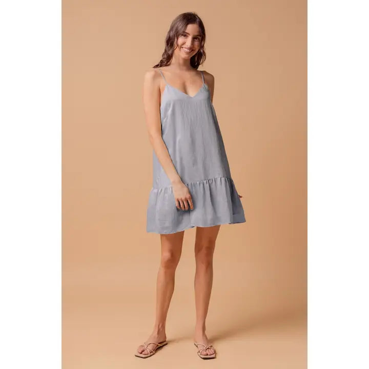 This Linen Ruffle-Hem Mini Dress offers breathable comfort with its lightweight fabric, ideal for warm weather. The delicate ruffle hem adds a stylish, feminine touch, enhancing movement and silhouette. Perfect for both casual outings and elegant day events, it combines natural texture with effortless sophistication.