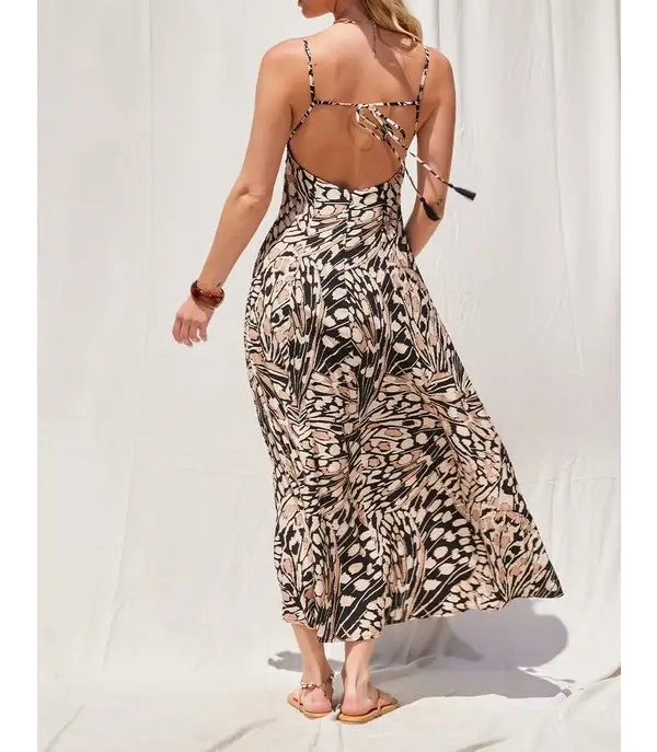Printed Open Back Maxi Dress