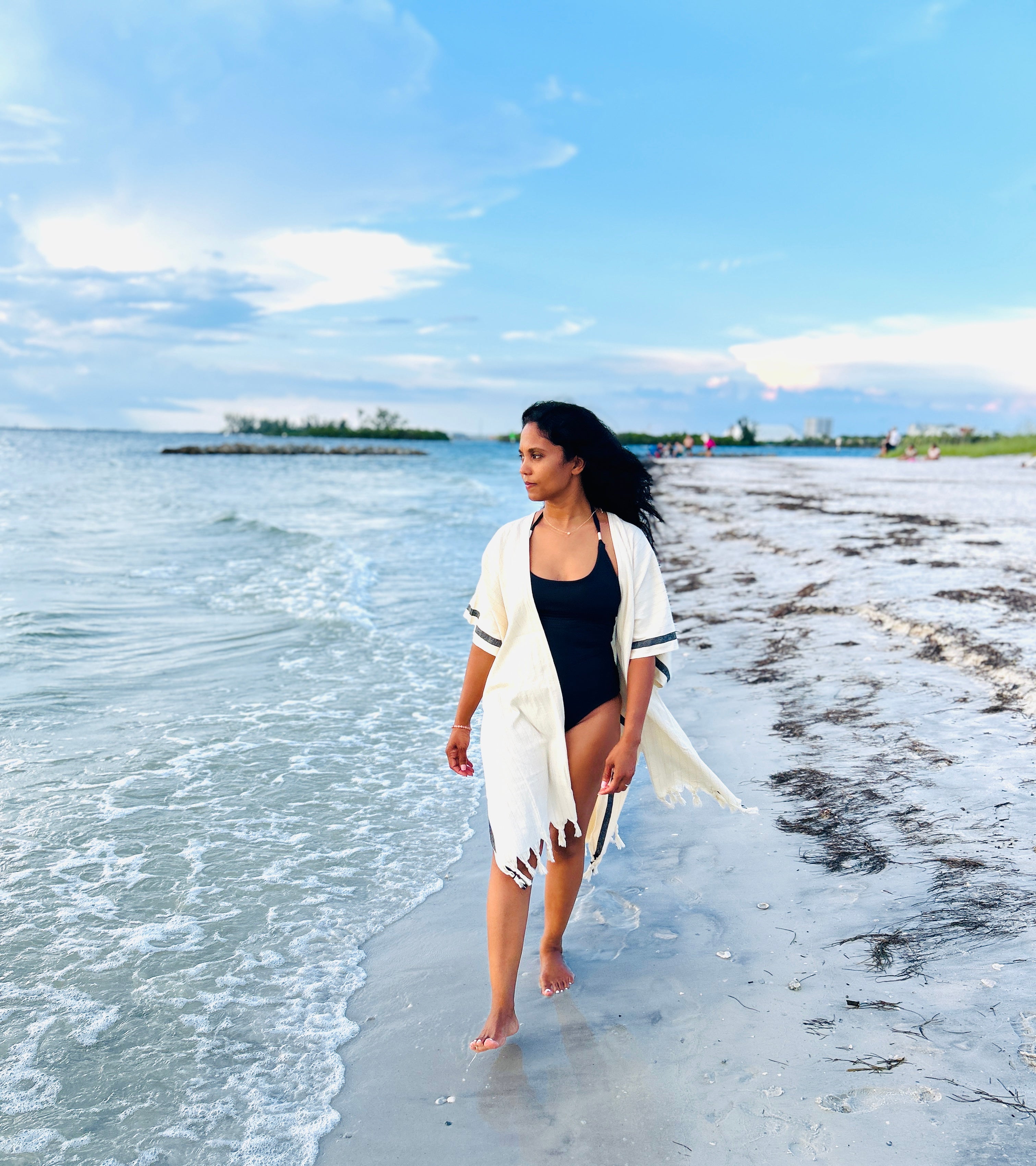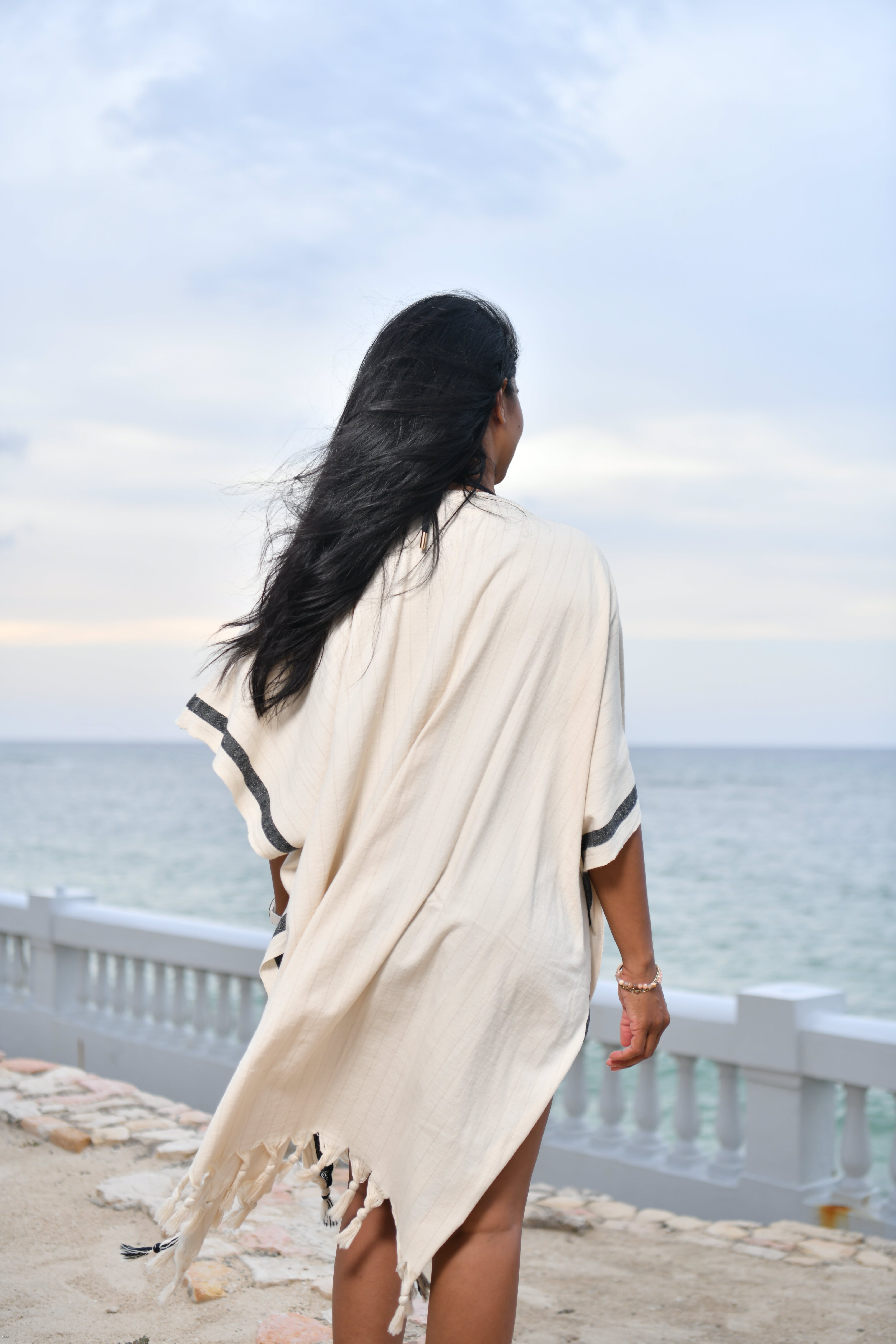 Natural single stripe Kimono - sophisticated and stylish beach cover up. This single stripe kimono is perfect for the beach, resort wear, or lounging by the pool.
