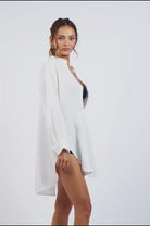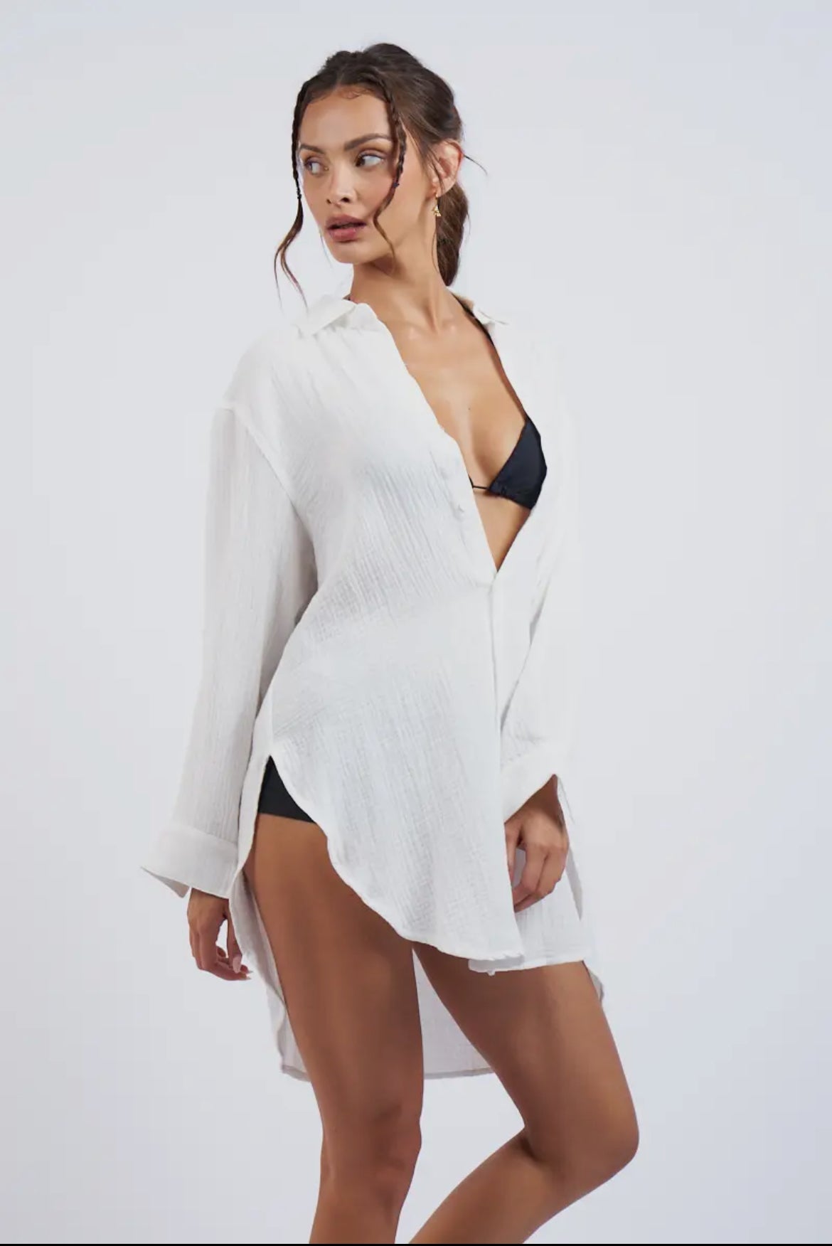 This is a lightweight swim cover up that can be used after a quick dip in the ocean or can be styled with jeans and mules for brunch with the gals.