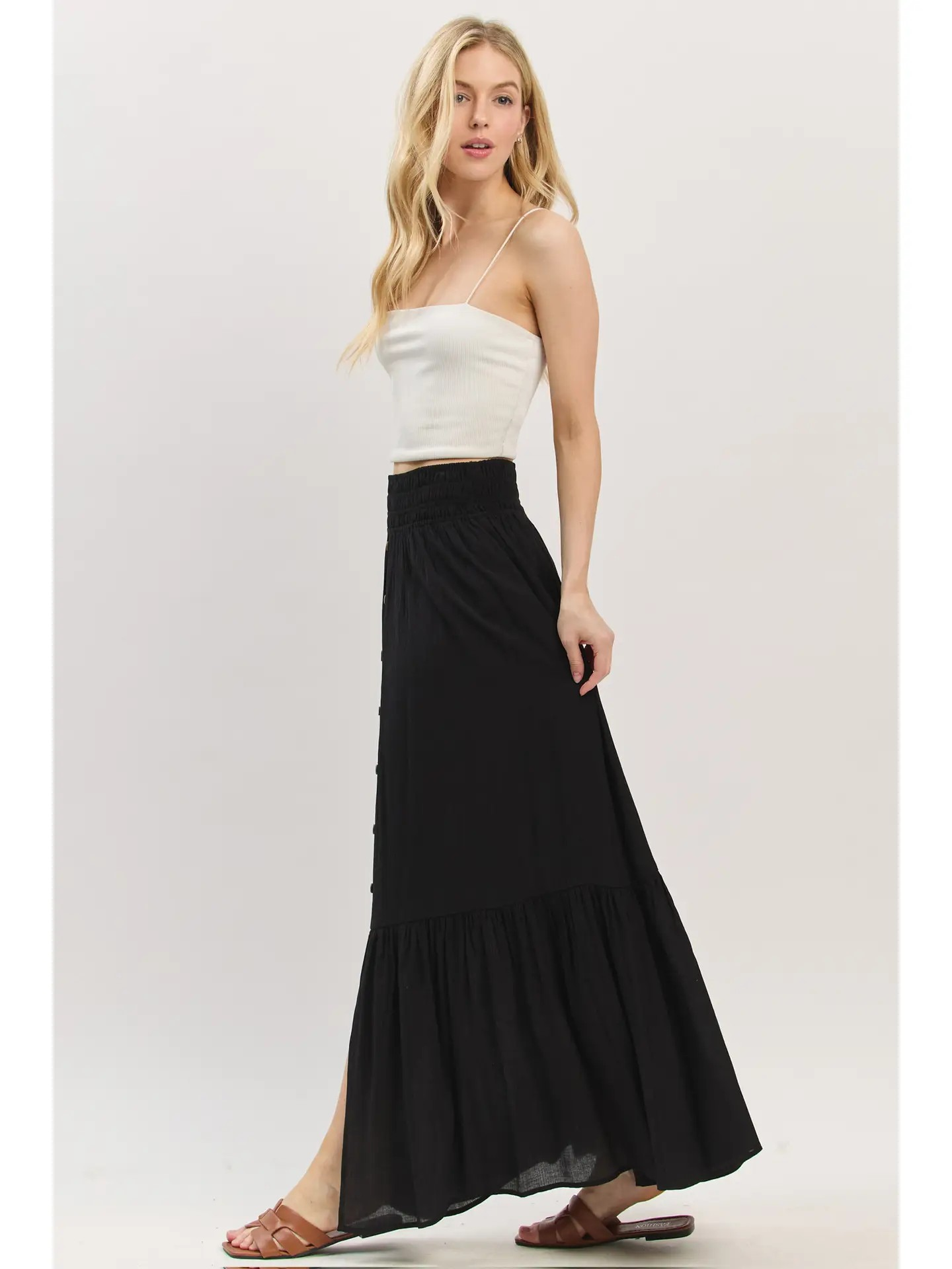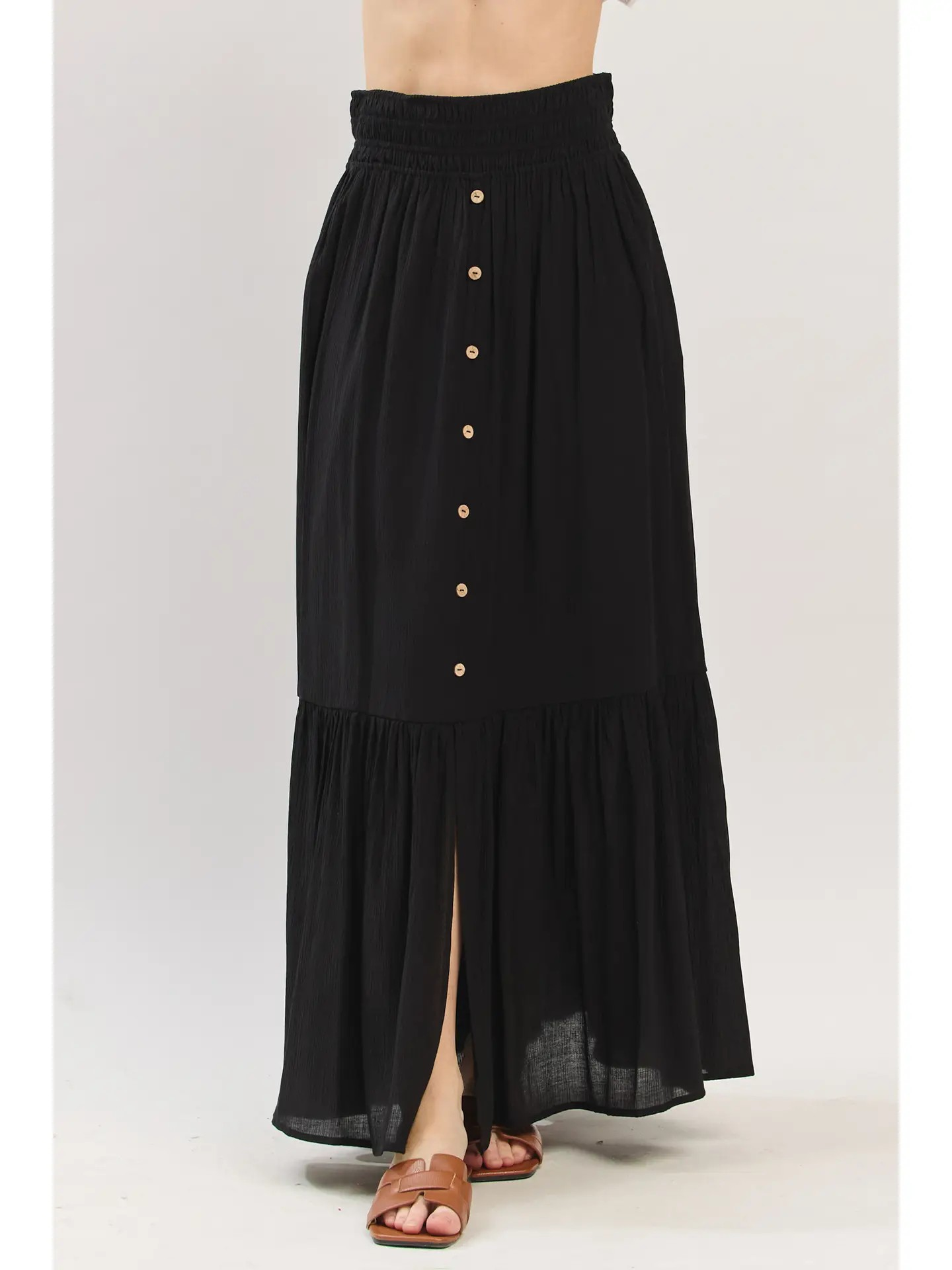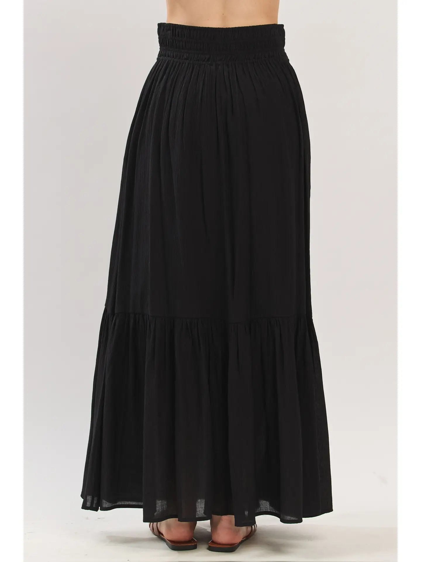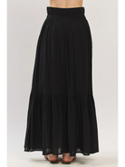 Ruffled Smocked Waist Maxi Skirt - Black